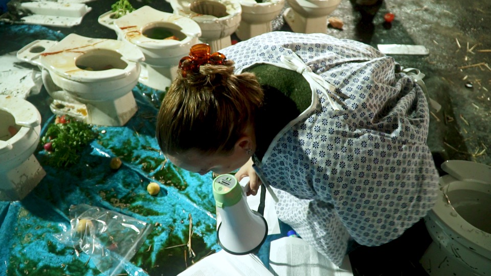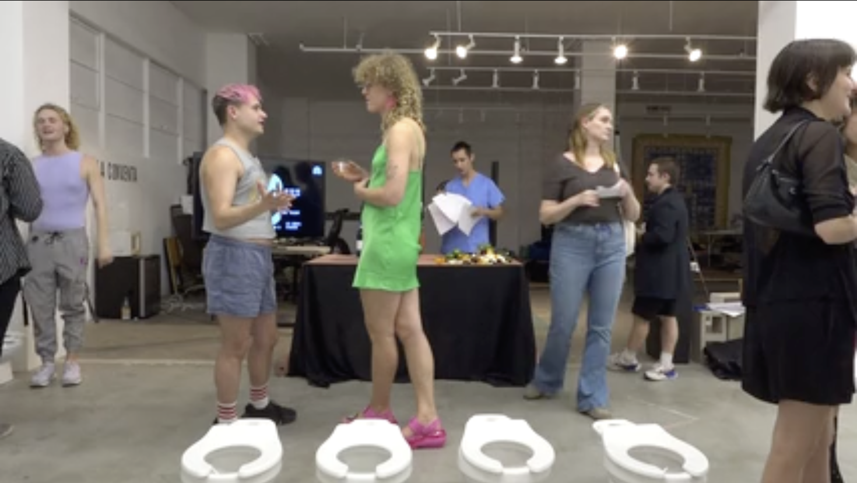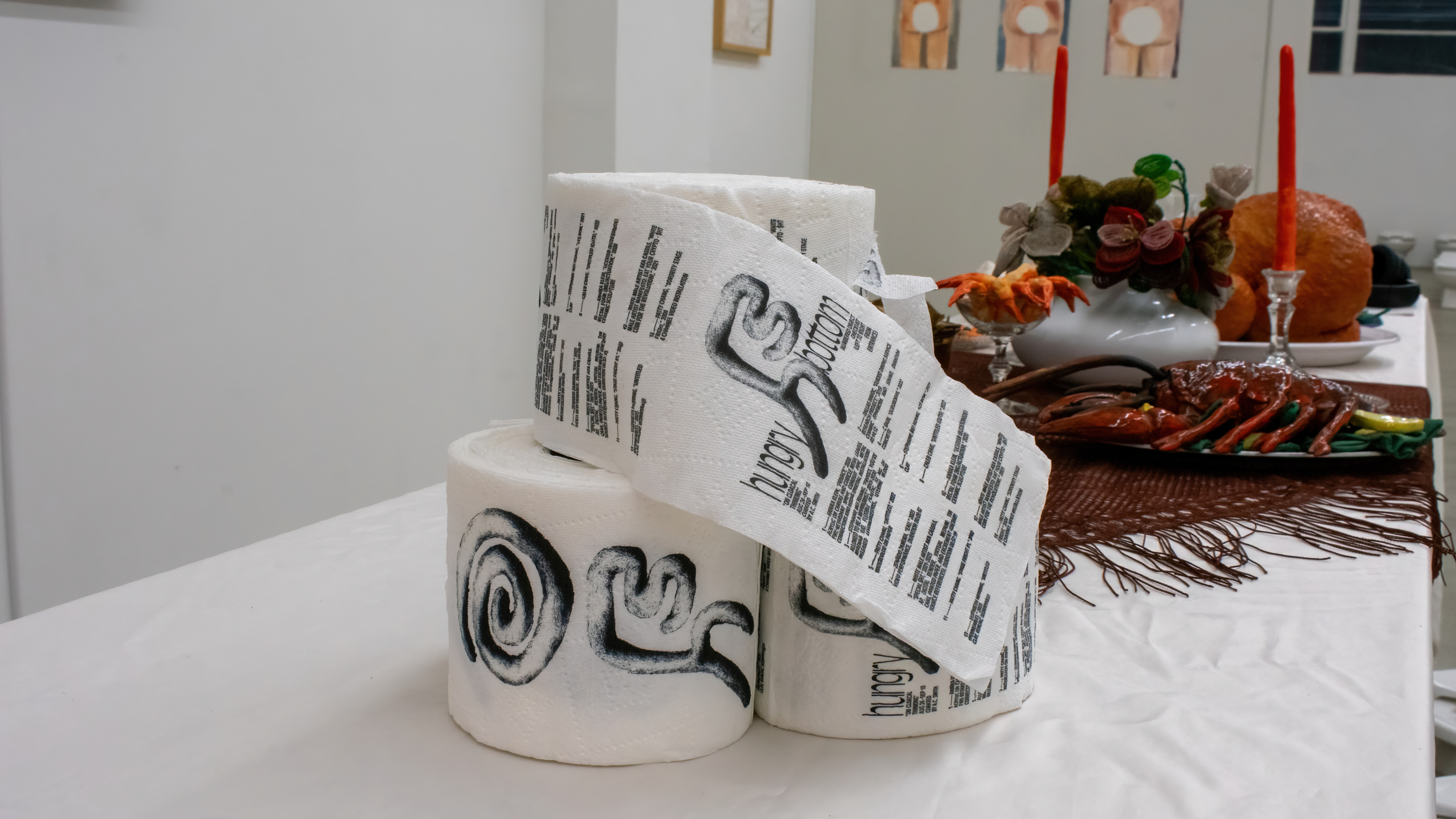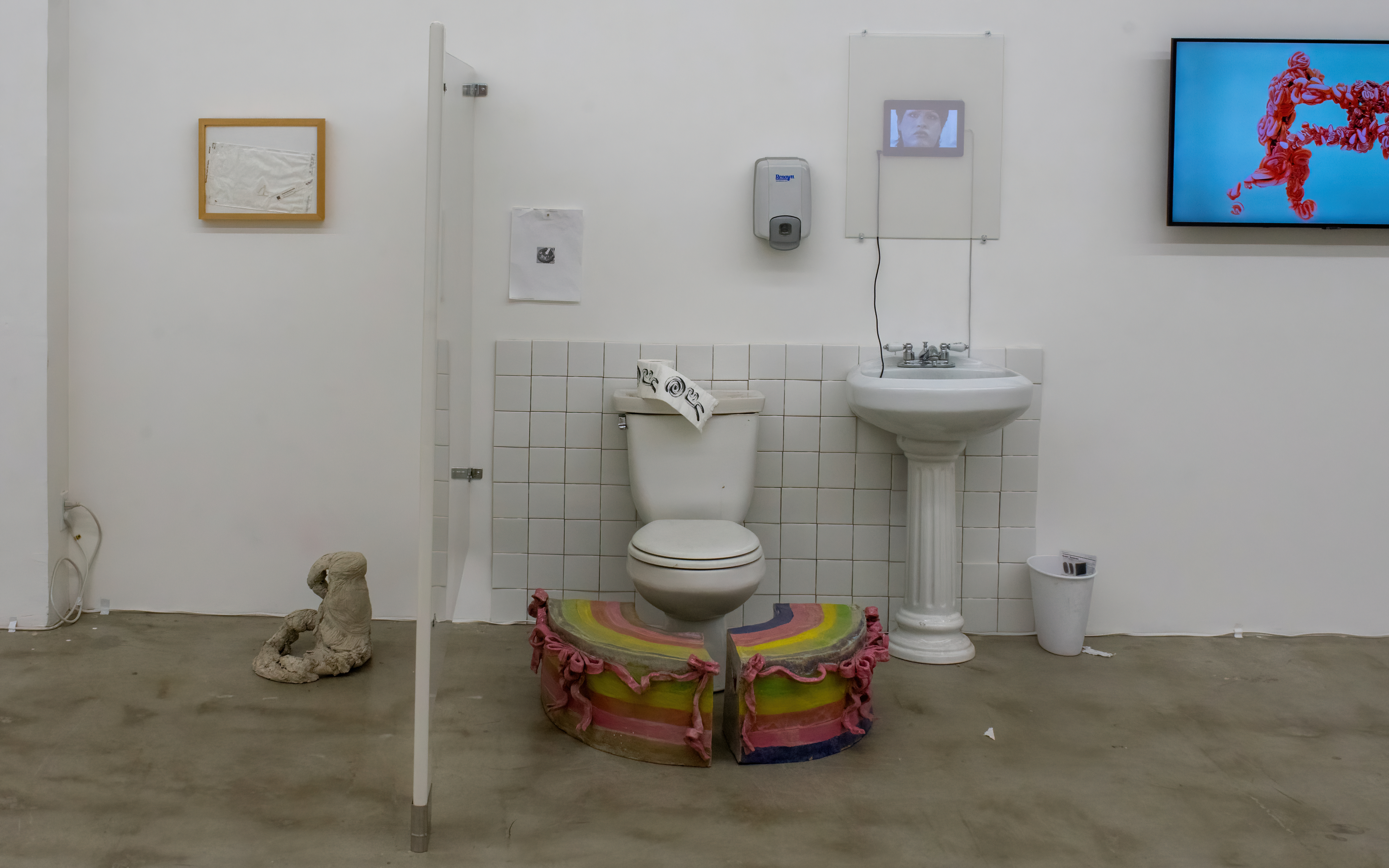 Hungry Bottom: On Cloacal Thinking is a psycho-somatic curatorial study on queer relationships with the gut, on view Thursday, August 24th, through Sunday, September 10th, as a part of the 2023 CalArts REEF Residency. A mise-en-scene that serves as both a bathroom and dining room exhibits works by artists C Bain, Patty Chang, Caleb Craig, Dallas Havoc, Elizabeth Herring, stephanie mei huang, Annika Klein, White Male Artist AKA Cassils, and Zenaido Zamora.