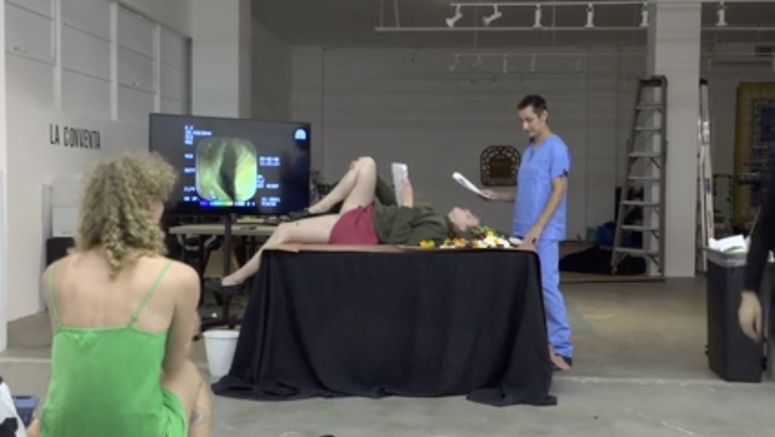 Approaching the gut (crawling on my knees, anus exposed), I expand on work from my 2021 MA Critical Studies Aesthetics & Politics thesis that utilizes the colonoscopic procedure as a critical strategy to document and assess corporeal performance, function, and affect. In this approach, I make the argument that all anorectal (and therefore gastrointestinal) conditions are queer based on two primary properties: 1.) Every "body" has one, and 2.) They are non-reproductive.